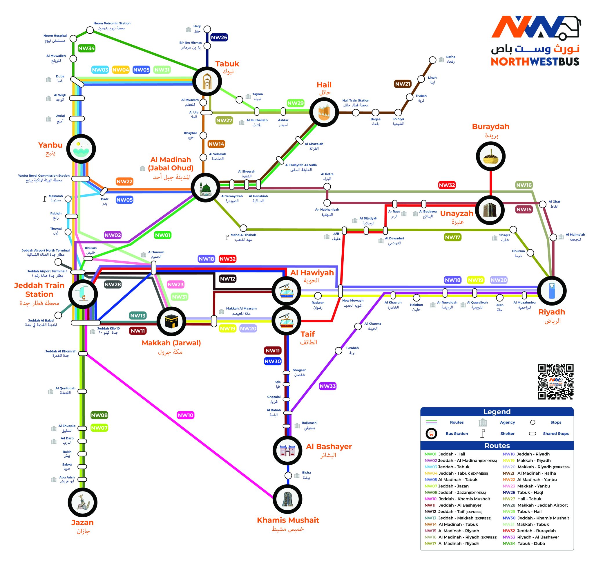 تفتخر حافلات الشمال الغربي بشبكة واسعة من الفروع والمحطات ذات المواقع الإستراتيجية. تقدم فروعنا خدمات متنوعة، بينما تضمن محطات التوقف المريحة لدينا سفرًا مريحًا وسهل الوصول إليه. ومع تواجدنا على نطاق واسع، نضمن رحلة سلسة للركاب عبر مختلف المواقع.